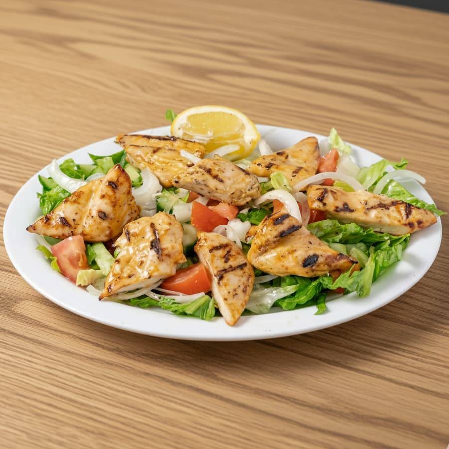 Σαλάτα με κοτόπουλο στήθος, ντομάτα, μαρούλι & chicken sauce.